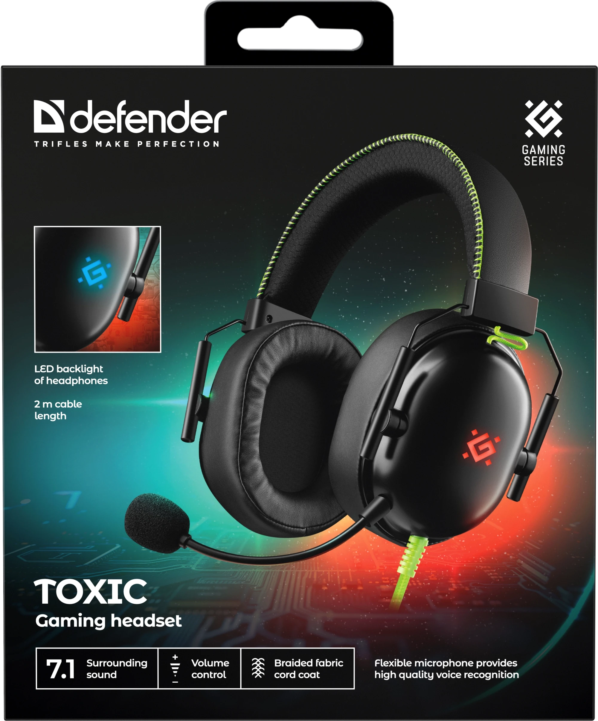 Игровая гарнитура Defender Toxic черный — 7.1, LED, провод 2 м