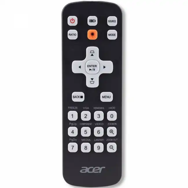 Пульт работает по инфракрасному каналу, что обеспечивает простоту настройки и совместимость с устройствами, поддерживающими инфракрасный интерфейс Acer.